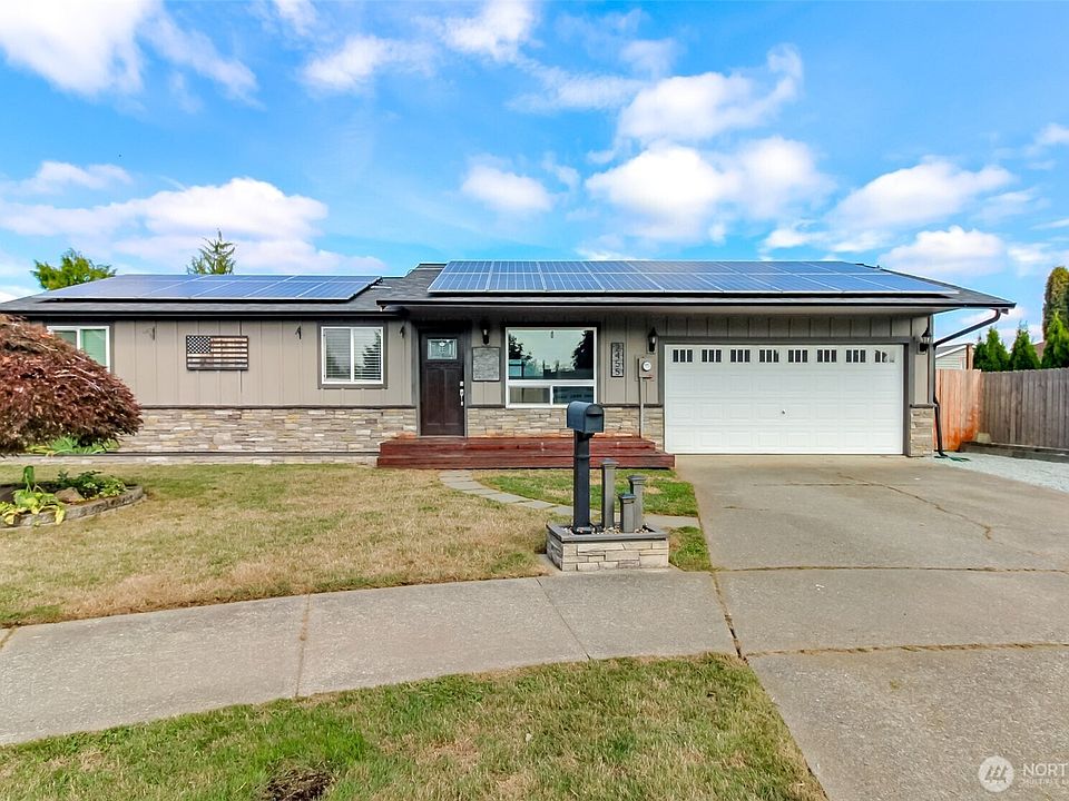 Fantastic 3 beds, 1 bath rambler home on a quiet cul-de-sac! Ready for a new owner! With LVP wood flooring and double pane vinyl windows thru out. Updated kitchen has lots of cupboard space & newer range with double ovens. Updated bathroom with a bidet. Garage has been converted to a great room. Can be used for a great room, family room, or bedroom or turn it back into a garage. Step out onto a large deck. A gazebo area to hang out and enjoy any weather. Expansive fenced backyard with a firepit to roast marshmallows. Plenty of room for a garden. Tool shed and extra large shed for a workshop. Solar panels help with your electricity bill. New gutters in April.