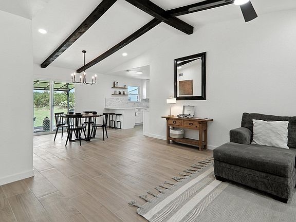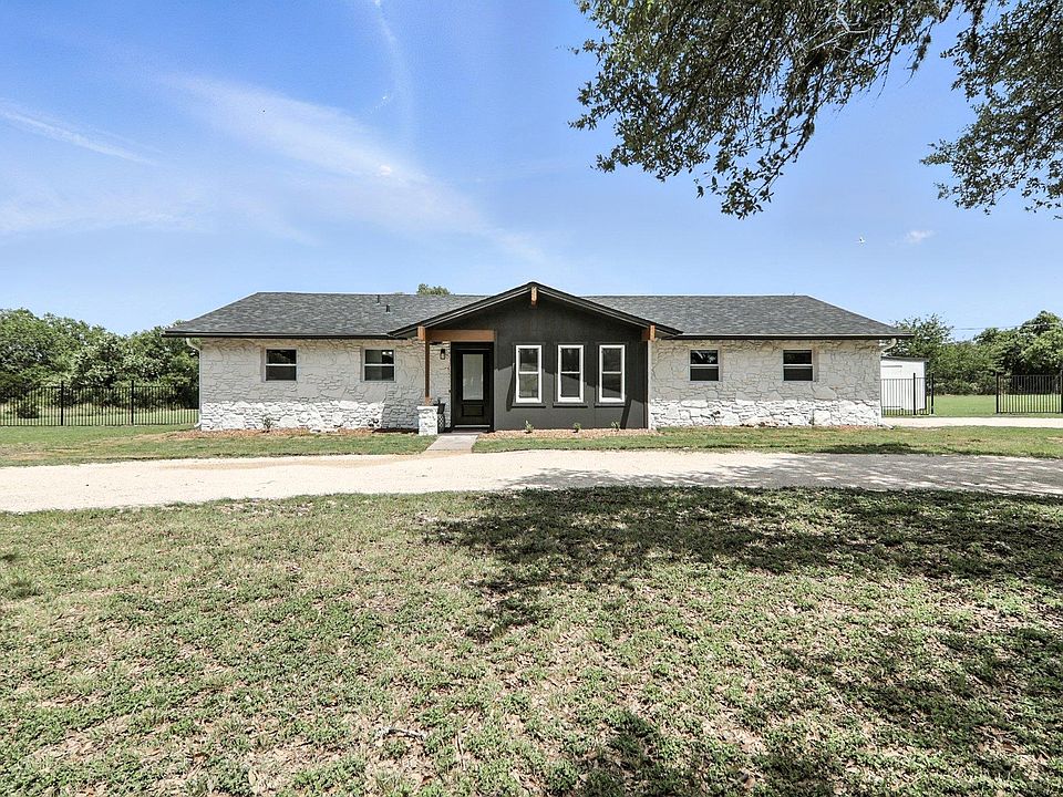 This fully renovated ranch-style home in Liberty Hill, Texas offers the perfect mix of modern upgrades and Hill Country charm—all on 3.65 acres with low property taxes. Priced $100,000 below the original asking price, this move-in ready home is a rare find. Inside, the 3-bedroom, 2-bath layout has been completely transformed. The kitchen features soft-close cabinetry, granite countertops, coordinating backsplash, and brand-new stainless steel appliances. Fresh paint and wood-look tile flooring extend throughout the home, while bathrooms showcase floor-to-ceiling tile for a luxury feel. The primary suite includes a spa-style walk-in shower with a sliding glass door, and upgraded LED lighting throughout the home adds style and energy efficiency. The property is designed with flexibility for work, play, and homesteading. A finished-out office/game room cabin provides extra space for remote work or hobbies. The party barn includes outlets, misters, and ambient lighting, making it perfect for entertaining year-round. A large workshop with new wiring, bright LED shop lighting, and dedicated lawn care storage supports any project or hobby. The epoxy-coated garage floor adds durability and a polished finish. With 3.65 acres of usable land, you’ll have plenty of room for gardening, chickens, goats, or any homesteading dreams. This property offers a true Hill Country lifestyle upgrade—just minutes from the conveniences of Liberty Hill.