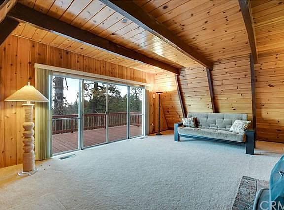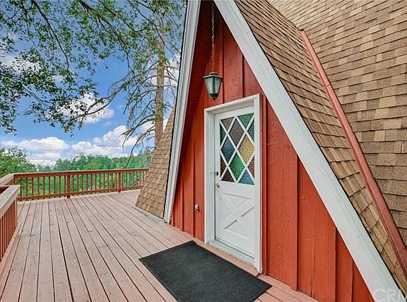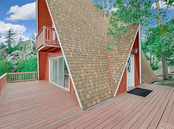 SPECTACULAR VIEWS! This charming 1232 Sq Ft. mountain cabin, on nearly 1/3 of an acre, sits almost at the top of the ridge with seclusion and privacy allowing you to enjoy stunning panoramic views of Diamond Valley lake and beyond. Open floor-plan includes cathedral ceiling living room, dining area and kitchen, with windows creating tons of natural light, and easy deck access. This cozy cabin has 3 levels of rooms and entertainment. A rustic wood stove on a brick hearth, for great winter ambiance and warmth. 2 bedrooms are located on the top level of the cabin, and a 3rd room at the bottom. Plenty of storage throughout the house, and there is a separate laundry / mud room located on the bottom level. Enjoy the expansive decking from numerous rooms throughout the house, The views are amazing, and on a clear day, you can see all the way to LA. The exterior has been foundationally upgraded with natural looking rock, and there is even flat space to park an RV. This home is about a 2 minute walk to Thousand Trails Resort located at the very top of the ridge!