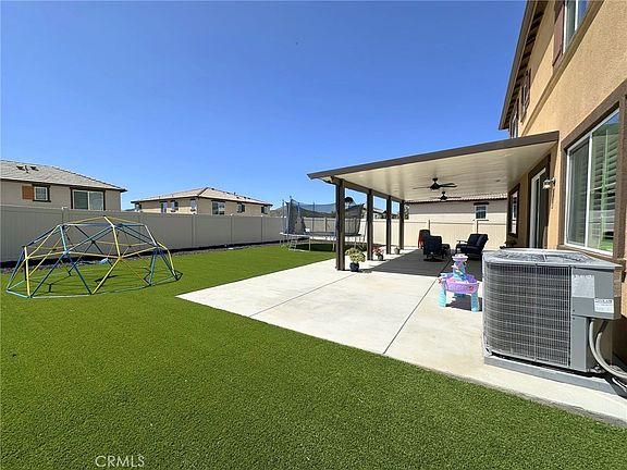 JUST 3 YEARS NEW, invest your future into this Upgraded Entertainers Dream Home! BIG, Beautiful Low-Maintenance Backyard and situated at the END of a Lovely Cul-de-Sac street, located in the central interior of Audie Murphy Ranch, a resort-style community. Live an active lifestyle in this spacious home with 4 Bedrooms, PLUS A LOFT/DEN upstairs & 3 FULL Bathrooms. One Bedroom conveniently located downstairs, adjacent to a Full Bath, making a perfect Guest Room/ Office/ In-Law quarters/ Gym Space/ Etc. The GIANT Great Room, includes a huge Kitchen with an over-sized Island to accommodate several bar stools for family & friends to gather. Walk-in Kitchen Pantry and Gas Stove/Range. Ample Entertainment potential both in the Great Room as well as the adjacent, all-weather fully Covered Patio Structure. Host the holidays, there’s room for everyone! Take your family/friends on scenic walks via a network of trails to parks and The Ranch House which offers Audie Murphy Homeowners and guests an Olympic-size Pool, additional Pools, Spa, Playgrounds, Picnic & BBQ Areas, fun Courts, many cozy Fire Pits to gather with neighbor friends. Banquet Rooms available to rent for your private events. Clubs & monthly events hosted at The Ranch House. If you need a home w/ amenities & plenty of space, inside & out, this is it! Upstairs features an ample-sized Primary BR with En Suite Bathroom, Dual Vanities, Spacious Shower, & huge Walk-In Closet. TWO additional Bedrooms upstairs, PLUS a Loft/Den/Game Rm & Full-size, Upstairs Laundry Rm. Many Upgrades include: Luxury Vinyl Flooring throughout downstairs living areas, bathrooms, & laundry room; Custom White Window Shutters throughout the entire home; Quartz Counter Tops in Kitchen & Baths; Stylish Kitchen Backsplash; Upgraded Carpeting; Ceiling Fans in almost every room; Extra Large Patio Slab boasting an all-weather Fully Covered Patio Structure with 2 ceiling fans and electrical upgrades; Artificial Turf grass; Side yard with weed barrier and Mulch; Professionally Landscaped Front yard with drought-friendly plantings & timed irrigation system; Rain Gutters; Tankless water heater; 12 solar panels (owned and paid off); EV-ready 240 outlet in the garage; Low-maintenance Backyard Block Walls and Vinyl Fencing. Walk to Middle-School, other schools are a short drive away. Enjoy nature hikes & bike rides on the paved Salt Creek Trail. Also, plenty of nearby Tot Lots, 5 beautiful community parks and Sport Courts within a 2-Mile radius.