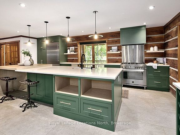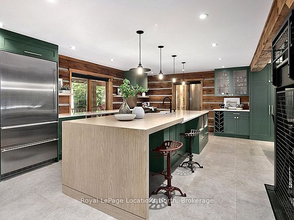 Welcome to your private country retreat. Nestled on a quiet road and surrounded by mature trees, this fully renovated custom log home is a rare blend of rustic charm and modern luxury. Set on 1.4 acres, surrounded by forest with a southwest-facing backyard - perfect for veggie gardens and soaking in afternoon sun as it dances across the property. Steps from the Tom Thomson Trail - ideal for a peaceful evening unwind and just a 5-minute drive to the pristine waterfront at St. Vincent Park on Georgian Bay. Enjoy a true country setting, only 10 minutes to downtown Meaford and a short drive to Owen Sound for city conveniences. Every detail in this home has been thoughtfully considered. At the heart is a stunning designer kitchen in a warm earthy green, featuring top-tier appliances, smart tech, and custom cabinetry that flows seamlessly into the expansive dining room. Clever additions like integrated outlets, a charging cupboard tucked into the hidden pantry, and a second oven in the oversized island make this space both functional and beautiful. The dining room opens onto the back deck, perfect for entertaining. The living room impresses with cathedral ceilings, a dramatic statement light, and a floor-to-ceiling wood-burning stone fireplace - ideal for cozy après-ski evenings. Upstairs, the spacious primary bedroom offers a spa-like 3-piece ensuite with heated floors and custom cabinetry. Two additional bedrooms share a stylish 4-piece bath, with original hardwood floors flowing throughout the upper level. A striking metal staircase leads to the lower level - perfect for entertaining with a custom wet bar, pool table, surround sound wiring, and a sleek bathroom with heated tile floors. A fourth bedroom or home office adds flexibility. The oversized 2-car garage features heated floors, custom cabinetry, extra-tall ceilings, and a bonus second floor for a studio, gym, or storage. This is more than a home - its a lifestyle, where nature & luxury exist in perfect harmony.