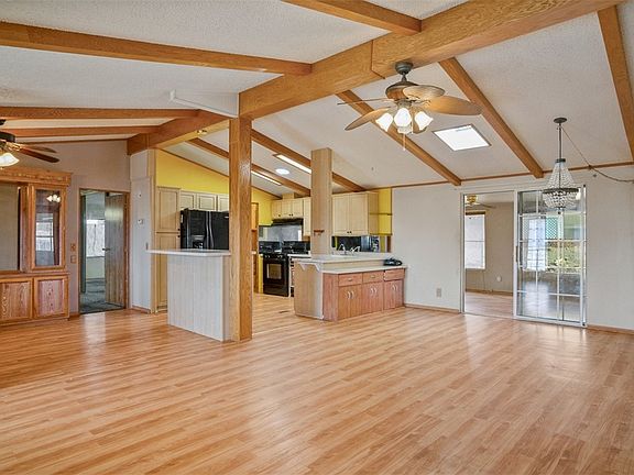 Your chance to own in Sun Valley on just shy of a half an acre! Plenty of space between your neighbors and just needing little updates and TLC. Kitchen is spacious, plenty of counter space and cabinets and solid surface countertops, open concept to living and dining area with an extra space for a formal dining room with cabinetry. The slider off the dining extends off the dining and goes into another enclosed room, can be used for an office or even another bedroom. Split floorplan offers privacy for the primary suite which has a very oversized master closet and large bathroom. Guest bedrooms are well sized and nearby the guest bath. Exterior has some landscape with mature palms, a detached 2 car garage and a carport