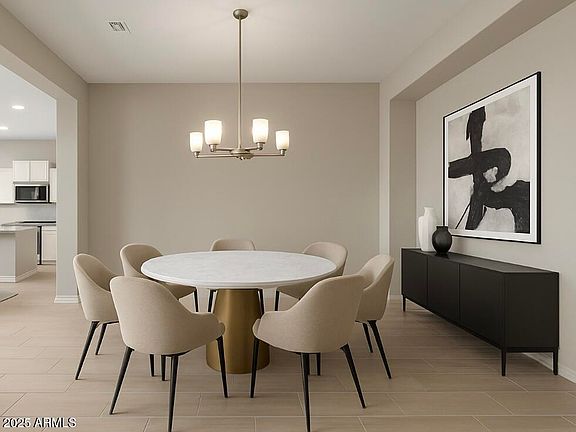 Welcome to this beautifully designed 4-bedroom 2.5 bath home where space, style & functionality come together effortlessly. From the moment you step inside you're greeted by soaring 10' ceilings & warm wood-look tile flooring that flows throughout the main living spaces, creating a modern yet inviting atmosphere. The open-concept great room is the heart of the home, ideal for relaxing or entertaining. The adjacent kitchen features white cabinetry, tile backsplash, a large island perfect for gathering, gas range & a massive walk-in pantry to keep everything organized & within reach. Host dinners in the formal dining room or take the party outside under the covered patio, complete w/ gas BBQ & surrounded by mature, fruit-producing trees. The 4-car tandem garage offers room for all your vehicles, toys, storage, or even a home gym or workshop.