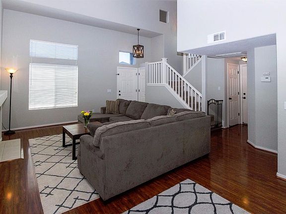 This well-maintained 1628 sq. ft home has 3 bedrooms and two full bathrooms upstairs and one convenient half bathroom downstairs. Two car garage. This home is on a corner lot with low maintenance landscaping and an irrigation drip line throughout. New laminate flooring in upstairs bathrooms and new carpet just installed. New ceiling fans in bedrooms. New landscaping and bark installed. Renter is responsible for utilities and landscape maintenance.