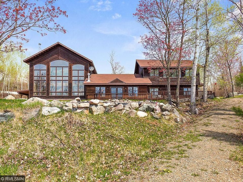Captivating views of the NE bay on Jasper Lake with 275 feet of lakeshore! Inside, open floor plan w/vaulted ceilings, exposed beams, and natural woodwork throughout. Enter to the heart of the home - kitchen & dining w/corner fireplace, SS appliances, center island & an abundance of custom cabinets. West wing wows with stacks of windows in the living room. Loft overlooks this space. Amusement room is complete w/surround sound & wet bar, but as summer heats up, enjoy bonfires, hot tub & deck, swimming & fishing!