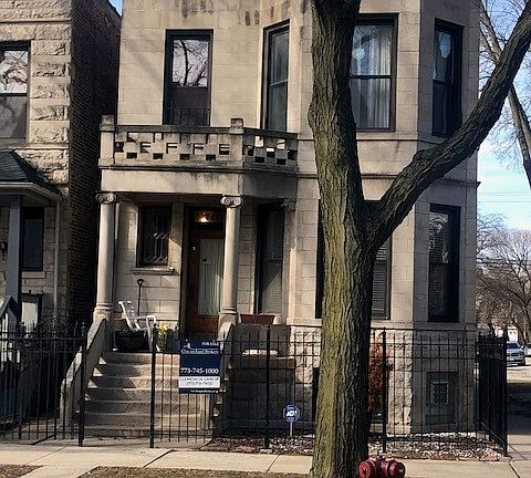 BEAUTIFUL CLASSIC GRAY STONE IN THE HEART OF LOGAN SQ. THIS 2 FLAT BUILDING LOCATED ON A CORNER LOT FEATURES EXTRA LARGE 1ST AND 2ND FLOORS APTS WITH 3 BEDRMS, VESTIBULES, LIVING ROOMS, AND SEPARATE DINING ROOMS. ORIGINAL WOODWORK, POCKET DOORS, AND BUILT-IN HUTCHES, HARDWOOD OAK FLOORS THROUGHOUT THE APTS. THE BASEMENT HAS BEEN TOTALLY REHABBED AND FINISHED WITH 2 MORE BEDROOMS, 1 FULL BATH, AND A LARGE FAMILY ROOM. LAUNDRY ROOM WITH COIN-OPERATED WASHER AND DRYER. THE ENCLOSED BACK PORCH HAS BEEN RECENTLY SIDED WITH NEW WINDOWS ON EACH FLOOR. 1 CAR GARAGE AND PAVERS IN THE BACKYARD. WALK TO THE BLUELINE, RESTAURANTS, CAFES, AND THE BEST OF LOGAN SQ.