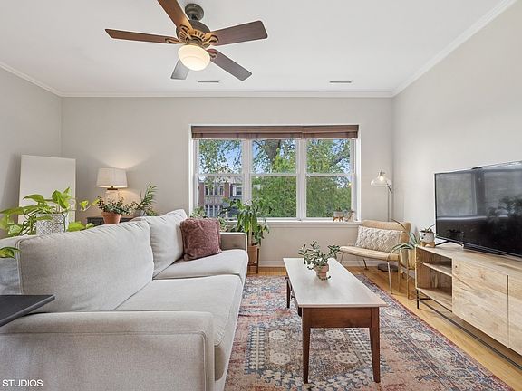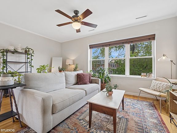Welcome home to this sun-drenched, south-facing top-floor condo located in a well-maintained all-brick building on a quiet dead-end tree-lined street surrounded by mostly single-family homes in North Center/Horner Park. This rarely available, charming unit offers a smart, spacious layout filled with natural light throughout the day. Be greeted by a separate entry foyer with coat + shoe storage. The living area is large enough for ample seating + furniture, an office/workout space and a separate dining area with 6 huge windows. The updated kitchen features newer stainless steel appliances, wood cabinetry, granite counters and opens directly to your private deck-perfect for relaxing, entertaining, or enjoying your morning coffee. This home is complete with hardwood floors throughout, newer central heat/ac, in unit laundry, separate 8x10 storage and ample street parking. Enjoy the perks of top-floor living with no neighbors above, abundant sunlight, and a quiet residential setting. The building is in excellent condition, reflecting consistent care and pride of ownership. All of this just minutes from Horner Park, Revere Park with new tennis courts, the new Riverwalk, dining, shopping, Bell K-8 School, and public transit. A rare opportunity to own a move-in-ready home in one of Chicago's most desirable neighborhoods!