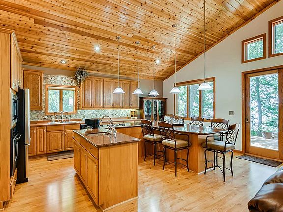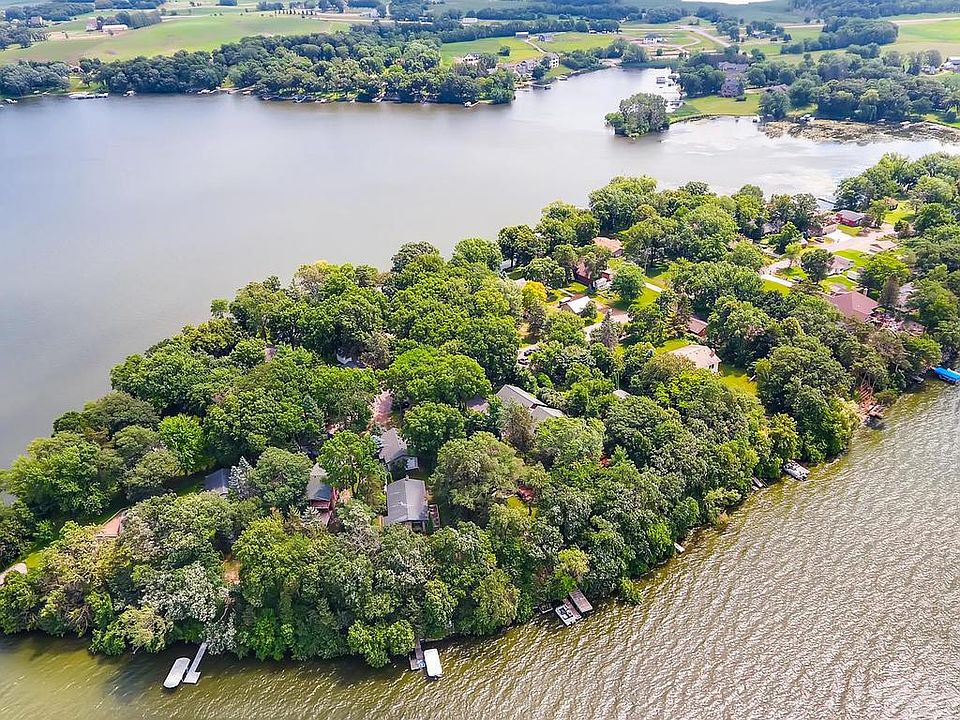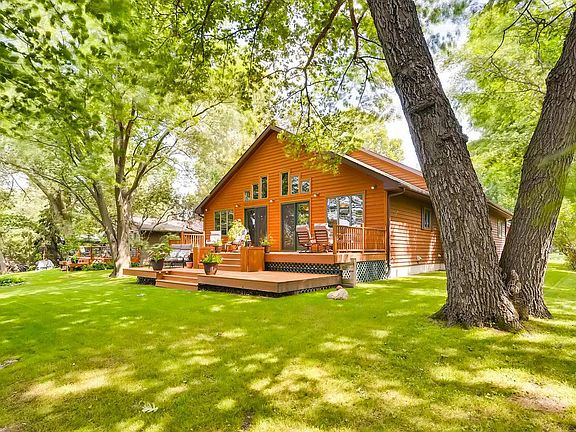 Custom built with no expense spared in the pursuit of the highest quality. Absolutely immaculate, one level living perched atop picturesque & recreational Cedar Lake with 76' of lakeshore-just 10 min from Prior Lake! Grand spaces and room sizes, soaring, cedar ceiling highlights the kitchen/great room, framed by a wall of windows overlooking the lush backyard & lake. 3 bedrooms on the main, including two owners' suites. Custom-designed, silestone kitchen island was carefully thought out-it even features a special coffee-making station! Two-tiered deck off of the kitchen/great room allows quick access to enjoy the outdoors, and to stroll down the brand new, stunning stone stairway to the dock and lake. 4 car heated garage could almost be considered living quarters, and has its own 200A service. Recently finished lower level includes 2 bedrooms with a 3/4 bath, large amusement room, another 1/2 bath + huge library which is actually a 6th bedroom! Andersen windows, new furnace in 2018