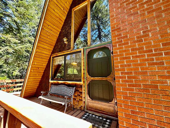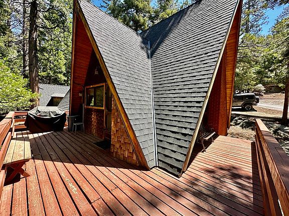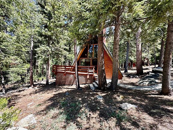 Creekside's Finest. This authentic A-Frame is found nestled against Strawberry Creek. Situated on a quarter acre lot this 3 bedroom 1.5 bath A-Frame will melt your heart. Parking is to the right of the house with access to the 1 car garage behind the house. The patio wraps from the front door just past the kitchen door giving you space to BBQ and enjoy an evenings meal. As you enter the home you are greeted by the semi open floor plan. Dining and Kitchen can be found to the left, with Living Room to the right. The living room features a skylight to bring in natural light. Enjoy a beverage while sitting in front of the fire in the brick fireplace. Past the living room you will find 2 bedrooms and the full bathroom, as well as a storage closet. Upstairs is the 3rd bedroom with sitting room and 1/2 bath. Behind the home is an A-Frame 1 car garage. This house comes furnished.