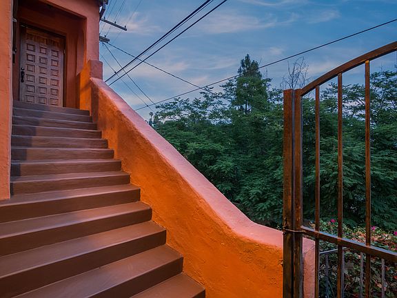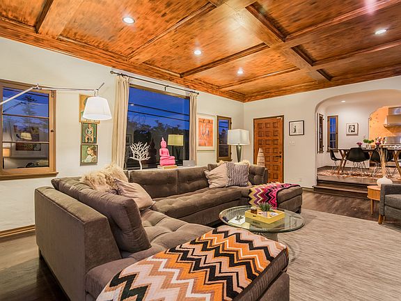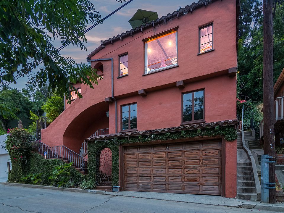 Delightful 1930's Franklin Hills Spanish with great open floorplan and hillside views. Large and unusually bright living room with fireplace and hillside views opens up to a dining room and kitchen with incredible breezes. Renovated kitchen with stainless appliances. Wood flooring throughout. Two bedrooms upstairs, including a master suite with private rooftop terrace and walk-in closet. Charming original full bath en-suite to the master. Downstairs you'll find two more bedrooms and another renovated full bath. One downstairs bedroom also has separate entrance from the street, making an ideal opportunity for a home office or media room. Hot tub and entertaining area in back, while a climb up the rear yard steps leads you to an open deck with hillside views, ideal for dinner parties or lounging to watch the sunset. Upgrades also include central air and heat and a two car garage. A great value in a great location.