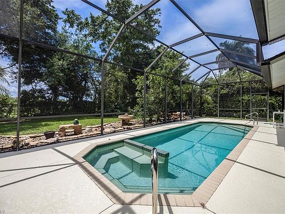 Tucked away on a quiet cul-de-sac in the desirable Kings Lake community, this well-maintained home offers 3 bedrooms plus a den, 2 bathrooms, and a peaceful, serene backyard with a screened lanai and pool. The pool features custom seating—perfect for lounging and enjoying the Southwest Florida sunshine in comfort. The backyard is spacious and private, ideal for quiet mornings or casual gatherings. Inside, the large and open kitchen includes crisp white cabinets, accent lighting, and plenty of storage, making it both functional and welcoming. Additional features include crown molding, chair railing, vaulted ceilings, custom doors, and built-in shelving throughout. The layout offers generously sized rooms and extra storage with custom closet systems. Large windows in the guest bedroom and den bring in great natural light. A new roof ( 2024 ), new water heater ( 2024 )and double-pane impact windows add durability and efficiency. An oversized 2-car garage with pull-down attic stairs provides even more storage space. Kings Lake is a peaceful community, featuring mature landscaping and a serene atmosphere. This community provides excellent amenities, including bike and jogging paths, a community pool, fitness center, and tennis courts. Enjoy the prime location, close to Downtown Naples and pristine white sand beaches.