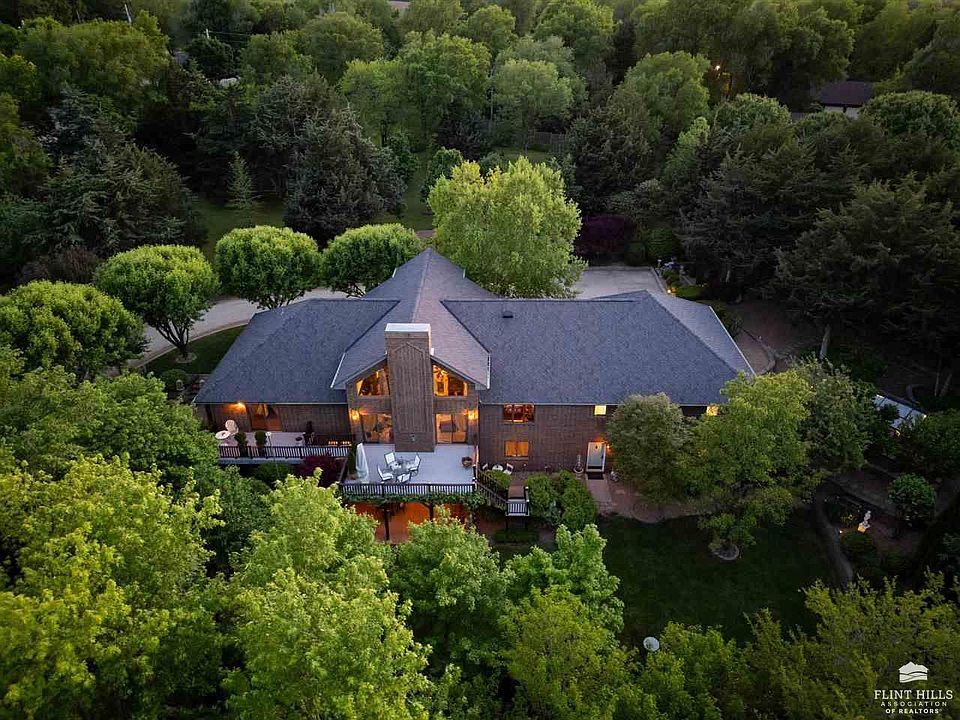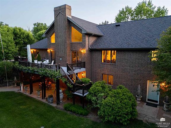 Experience this private oasis on the Kansas plains with English inspired gardens and nestled among the trees, this home is a pinnacle of midwest living you deserve. Crafted with meticulous attention to detail, this exceptional all brick home boasts the finest materials and craftsmanship. Outfitted with top of the line appliances, the gourmet kitchen is a chef's dream. For lavish entertaining and intimate gatherings, the floorplan offers spacious areas for dining and relaxation while the outdoor patio and upper deck await hosting and entertaining family and friends. Retreat to the serene primary suite with spa inspired bath showcasing balcony access. Elevate your stay-cation vibe and rejuvenate in the sauna and wine room. Outdoors, the manicured grounds, and temperature controlled greenhouse invite you to relax and enjoy. The lush trees, walkways, and attractive landscaping set the stage for an exceptional retreat.