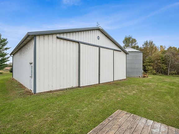 hobby farming, hunting, or establishing your private country estate. The site is well-equipped with valuable outbuildings, including a 42' x 45' pole barn, a two-car detached garage, three grain bins, and a chicken coop—all ready for storage, operations, or hobbies. The existing 4-bedroom, 2-bathroom home presents a blank canvas opportunity. A new septic system was installed in 2020, and new shingles were added in 2020.