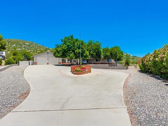 San Diego Country Estates! This Beautiful Single Level Move-In Ready home is tucked away on an elevated lot at the end of a quiet cul-de-sac. Enjoy distant mountain views from the front porch & large covered back patio. The property offers over 1/2 an acre of useable space, a gated area to store the toys, RV, Boat, Work Equipment. The attached 2-car garage makes it EZ to carry groceries, also a drive thru door to the back convenient for projects & garden equipment . A wonderful floorplan w/ 3 Large BR's (4th used as office/den w/option to convert). The Primary BR has a separate tub/shower, walk-in closet & private patio. The kitchen is perfect for the home chef! The Living & Dining rooms w/large picture windows allows plenty of natural lighting. Tile, Gleaming wood floors & so much more!