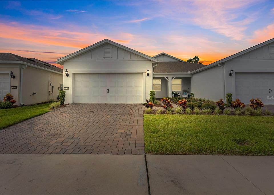 Conservation Views from your paved residential screened lanai. Privacy & peace with no rear neighbors at Del Webb, Sunbridge, a 55+ retirement community right in Central Florida. This is a customized 'Ellenwood' floor plan with 2 beds, 2 baths & a flex room. Paver drive & walkway, A 2-car garage, with a tankless hot-water heater. Step through the lead-glass front entrance & you will encounter other upgrades every where you look, courtesy of the seller, such as enhanced wood-look tile throughout, an upgraded living room ceiling fan, backsplash, top-of-the-line Stainless steel appliances, including a natural-gas range, smart washer & dryer also very much top of the line, 42" natural wood soft close cabinetry, complemented by Quartz countertops in the kitchen and both bathrooms. The pendulum lights located above the kitchen island set the ambiance throughout the kitchen & on into the rest of the house. Blinds on all the windows, fans in both bedrooms & den/flex room. Check out the primary suite with an ensuite bathroom, frameless-glass shower stall door- walk-in NO STEP, spacious vanity counter with dual sinks, plus a walk-in closet. Solar tube create a bright and airy natural atmosphere. NOTE; YOUR HOA MONTHLY FEE IS RESPONSIBLE FOR THE HAMMOCK CLUBHOUSE ENCOMPASING 27,000 sq ft AND THE ACTIVITIES THERE-IN, FOR 1 Gigabit- HIGH SPEED INTERNET, COMPLETE LAWN CARE, EXTERIOR PAINTING, ROOF REPLACEMENT & AN ANNUAL TERMITE BOND. ALL THIS EQUALS PEACE OF MIND FOR THE NEW BUYERS. Del Webb Sunbridge offers numerous amenities & many social events centered within the Hammock Clubhouse facility. The clubhouse features the infamous Sabal Tavern & Grille and a state-of-the-art Wellness /fitness center. The resort-style pool area features a zero-entry heated pool with lap lanes and a resistance pool. There are also hammocks & a heated spa for you to chill out and relax in, equaling all that is Florida............... Now, for your 4-legged companion, take them to the dog park located beside the mailing station, where you will collect your daily mail. You will be close to Lake Nona with a plethora of shopping, dining, medical & entertainment. The 27,000 sq ft, clubhouse and the pool area, Amphitheater, Tennis & pickleball courts, out under the stars. The closest Publix grocery store is 2.4 miles away. Orlando Airport (MCO), 35-45 miles away, as well as numerous Florida attractions.