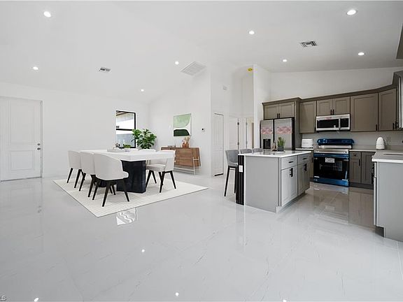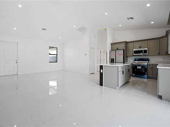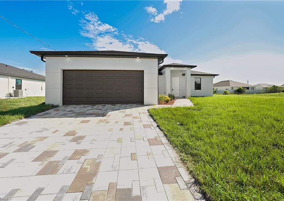 Spectacular 4 Bedroom 2 Bath, and two car garage. CBS NEW CONSTRUCTION Home is in a desirable neighborhood of Cape Coral. Plenty of living room space with High Ceilings and a marvelous Open Floor Plan Kitchen with upgraded cabinets and countertops. All Windows and Doors are top-quality Hurricane impact-resistant. The master bedroom is large, with plenty of closet space and a large bathroom. All Rooms are spacious and have excellent storage space. The home's patio features a pool and a large backyard. Open concept design is perfect for entertaining and creating lasting memories with your loved ones. The kitchen is a chef's dream, with modern stainless steel appliances, beautiful countertops