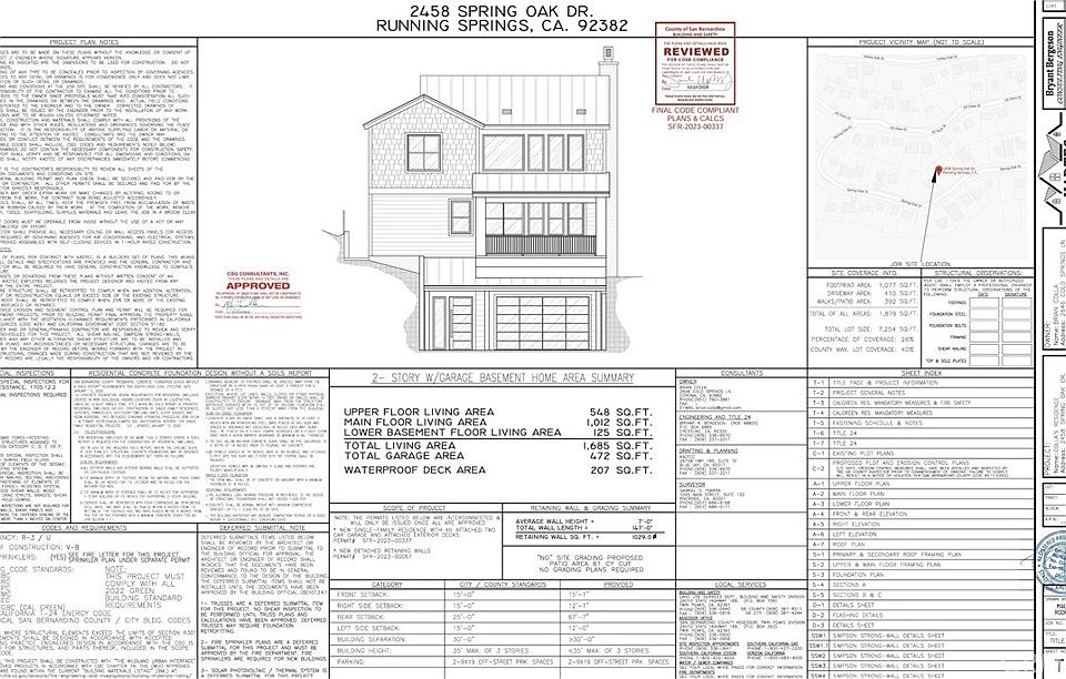 Beautiful Lot on a beautiful and tranquil street. This lot comes with APPROVED PLANS for a home that is 1,685 Sq Ft with 3 Bedrooms and 2 Baths. San Bernardino County has issued the APPROVAL for the both the retaining walls for the foundation as well the home. Utilities are at the street. There are residential homes adjacent to the lot. Listing agent is related to the seller. Buyer to do all due diligence, no warranties are made.