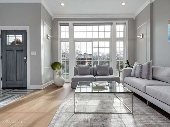 Situated on a corner lot with unobstructed west facing sunlight, this beautiful North Center home is located in the Bell School District. Step into a bright living/dining room featuring white oak flooring, south facing windows & smart Lutron lighting throughout. The gourmet kitchen has a 12 foot waterfall island with built-in cabinets, wine fridge, stainless steel high end appliances, pantry, marble counters & back splash and opens to the family room. The en-suite primary bedroom sits on the second level with a large walk-in-closet, room for a king sized bed and mechanical blinds with a new shower in the primary bathroom. Two sizable bedrooms, an updated bathroom & large linen closet complete the second floor. The lower level has a large rec room, dry bar, laundry room & two bedrooms perfect for office, guest room or workout room. The yard was professionally landscaped and includes turf, smart landscaping lighting and irrigation system, pavers and gas fire pit. Two car garage with 220 Tesla wall charger. Fantastic location by Revere Park, Bell School, St. Ben's, Starbucks, Bradley Place, all the conveniences of stores & restaurants on Western and a quick walk to Roscoe Village and the heart of North Center.
