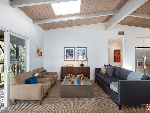 Warm Mid Century tucked away in the hills of lower Nichols Canyon on coveted Zorada Drive. Gated entry to wood beamed covered entertainment patio and private front door entry. Open floor plan including living room, kitchen and dining area all anchored by fireplace, wood beamed ceilings, tile floors & sliding glass doors to deck & views of the canyon. Spacious Master Suite w/ hard wood floors and beamed ceilings, custom bath opens to deck and is surrounded by green views. 2 additional bedroom and bath complete 1st level. Family room with hardwood floors opens to private screened in spa grotto that opens to outdoor patio & lush landscaping. Family room could also be a 2nd Master Suite. Just minutes to West Hollywood and easily accessible to LAX, Downtown, Studio City.