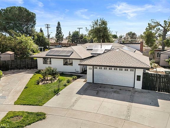 HUGE PREMIUM LOT!!! Set on an expansive, fully-usable 16,000+ SF lot, this nearly 2,500 SF SINGLE STORY four-bedroom home perfectly blends elegant design with modern comfort. Step inside to soaring ceilings, crown molding, and an open, light-filled floor plan with custom finishes throughout. Newly installed wood-look flooring and plush carpeting bring warmth and sophistication. The fully remodeled chef’s kitchen is the focal point of the home, featuring quartz countertops, an oversized prep-and-gather island, bright white shaker cabinetry, stainless steel appliances, stylish lighting, and abundant storage. Host formal gatherings in the dining room with classic wainscoting or unwind in the inviting great room with a brick fireplace and a flexible adjacent space—ideal for a game room, office, or home gym—with direct outdoor access. The primary suite offers a spa-inspired bath with dual vanities, a large walk-in shower, a spacious closet, and a private retreat with side yard access. Three additional bedrooms include one en-suite, plus another full bath with an oversized stone shower. Sliding doors throughout lead to the lush, fully fenced backyard—a true entertainer’s dream—featuring a sun-soaked patio, huge grassy lawn, gardens, sparkling pool, and side yard with a large, detached workshop. Bonus amenities include energy efficient solar system, RV parking and room for a sport court or future ADU. The ideal location in a well-established neighborhood near great restaurants, parks, schools, shopping, grocery stores, and freeway access. It has everything you have been looking for with room to add more!