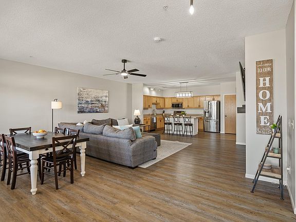 Rare opportunity to own a home at this price point within the highly desired Edgewater neighborhood! The welcoming front porch has plenty of space for you to sit and enjoy the warmer days that are coming soon! Open concept main level features high ceilings, a spacious living room with gas fireplace, and large windows. Living space flows into the open kitchen which includes a large butcher block countertop island, plenty of counter space and storage, along with stainless-steel appliances (2021). Bedrooms with large loft can be found on the upper level, along with a full bath and laundry room. Primary bedroom has a nice walk-in closet and private full bath. New carpet, fresh paint throughout, newer roof, water heater (2023), water softener (2021). A secure entrance to the underground parking leads directly to the 2-car garage space. Walking paths weave their way through the Edgewater neighborhood with the Edgewater Park and playground just a block away!