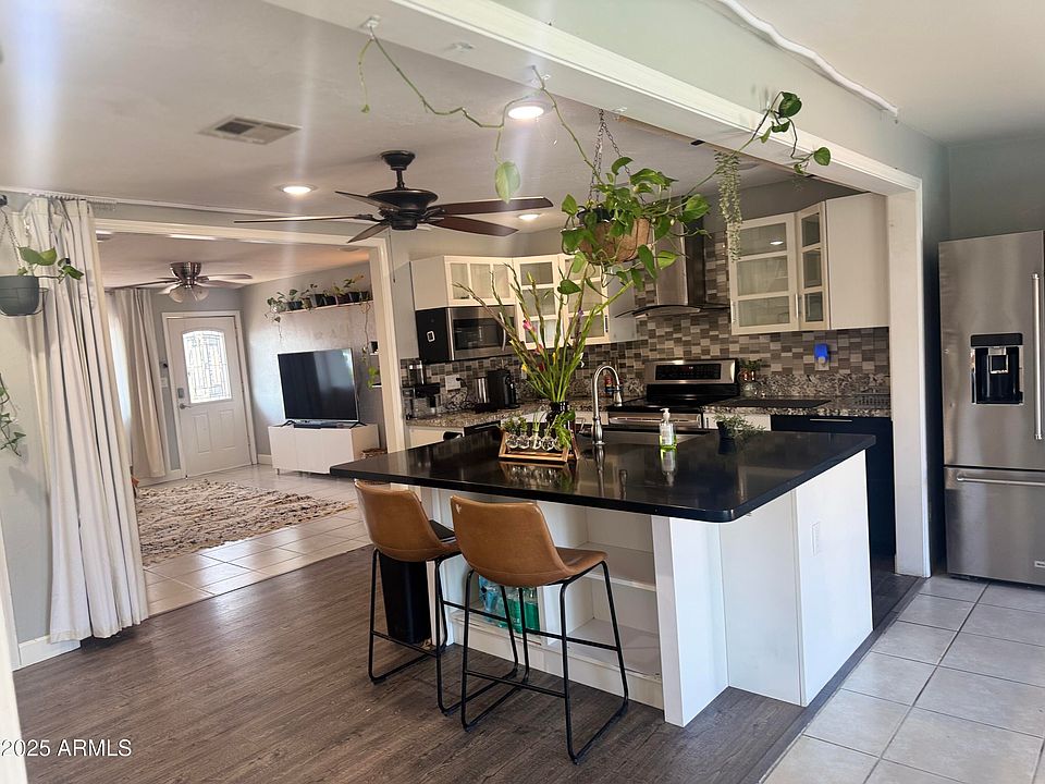 Welcome to your beautiful oasis *Beautifully maintained 3-bedroom, 1-bath home on a spacious corner lot in a quiet Mesa neighborhood. Features include a remodeled kitchen and bath, Kitchen features extra large marble island, tile and laminate flooring, and a bonus Arizona rooma "perfect for extra living space or a home office. Enjoy a private sparking pebble tec pool, desert landscaping, rear sprinklers, and a 2-car carport, RV gate/parking Appliances (refrigerator, washer, dryer) included. No HOA! Curtain rods and drapery/curtains for the windows, outdoor string lights, potted plants convey. Property also for Listed for Sale MLS 6857803
