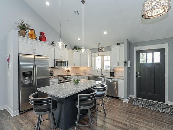 Discover Elevated Living in This Exceptional Townhome. This unit offers a superior living experience with meticulous attention to detail and high-end finishes. The kitchen features, often the centerpiece of the home, offers soft-close white cabinets with under cabinet lighting and a tile backsplash, granite countertops, and pendant island lights over a striking Hale navy blue island with built-in outlets. High end appliances, including the gas range add to the joy of cooking. Luxury vinyl plank flooring flows throughout the main floor, enhancing the home's contemporary feel along with stunning floor light fixtures. The main floor laundry/mud room stands out with added cabinets and tucked away utility sink in addition to the storage at every turn. The inviting living area showcases a huge upgrade with a cozy fireplace with birch logs and stacked stone tile. Sliding door to the private patio offers a great space for grilling and relaxation, overlooking association land with no neighbors behind.