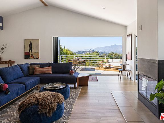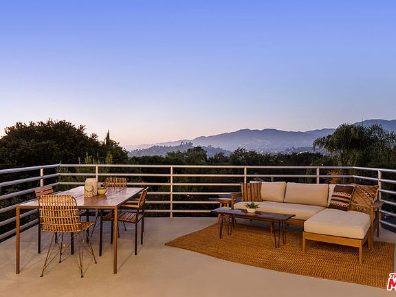 Four bedrooms, epic views, and expansive living space make this modern retreat a rare find in the hills of Glassell Park. Spanning three floors, the versatile layout offers ample room to spread out. The upper level comprises a great room with accordion doors leading to a large deck, perfect for catching colorful sunsets. The open floor plan flows seamlessly into the dining and kitchen area, nicely appointed with a full suite of appliances and wine fridge. Head downstairs to find four bedrooms, including a spacious ensuite Primary, plus a separate office. The lower level presents a generous den/game room ready for your media setup or home gym. Stunning vistas are all around; the terraced yard is your private haven with fruit trees, flat green space, and a covered patio for all-weather gatherings. Conveniences include a two-car garage with direct access, central AC/heat, and owned solar panels; access is easy to local gems Bub & Grandma's, The Grant, Habitat, and more.