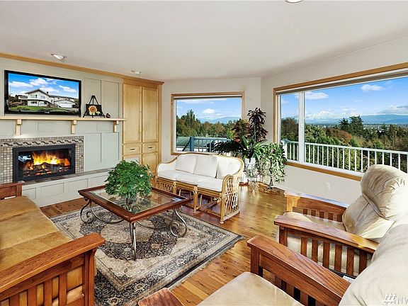 Classic Ferndale home with a view of Mt Baker and the Twin Sisters. This home is positioned perfectly to take full advantage of the mountain from the main living areas. The main level has a spacious living room with big windows and beautiful fireplace, remodeled kitchen, master bedroom, 2 bathrooms and 2 bedrooms. Lower floor can be a separate living space with a mini kitchen, living room, bedroom, bath and laundry. Australian Cypress wood flooring, new windows, Viking range, sub zero fridge.