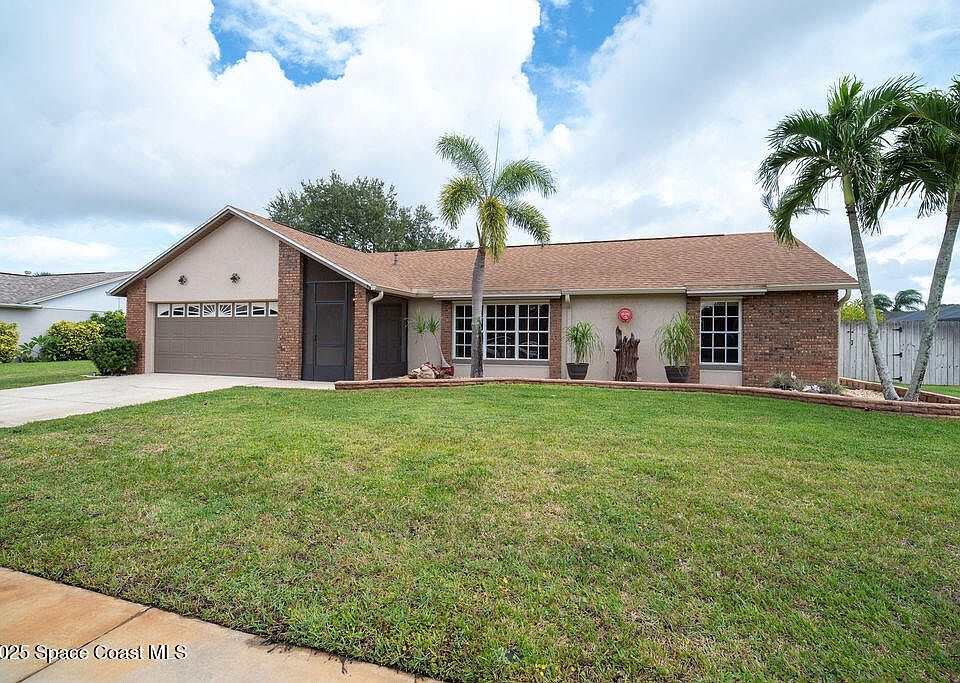 Welcome to this beautifully maintained 4-bedroom, 2-bath home that perfectly blends modern updates, comfort, and the Florida lifestyle. Major improvements include a 2020 roof, 2019 A/C, 2023 hot water heater, & 2022 hurricane shutters for peace of mind. Inside, you'll find a spacious master suite w/ double sinks and a walk-in closet featuring double racks, plus an extended dining room, abundant kitchen cabinetry with convenient pull-out drawers, and a rare indoor laundry room. The home also includes a 2-car garage and is situated on wide streets, enhancing curb appeal and parking ease. The fully screened pool & lanai offer an ideal space for dining and entertaining, complete w/ a covered gas grill hookup, outdoor TV connection, & a pass-through kitchen window. Sliding pocket doors in the living room & master bedroom open completely to let the outdoors in, while the screened front porch provides a wonderful cross-breeze and energy savings during cooler months. Read additional remarks!! Outdoors, the large fenced yard offers a cement pad for a boat/RV or trailer storage,shed, multiple spigots, tropical landscaping with stone edge and a beautiful Plumeria tree.