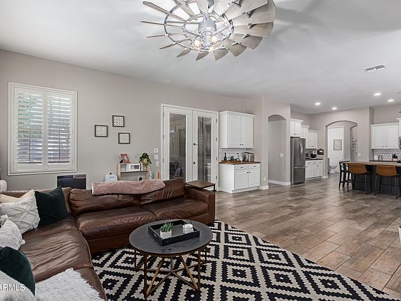 This beautifully upgraded home is conveniently located in a hot spot of Gilbert just minutes from popular restaurants, shopping, and amenities including Agritopia and San Tan Village. It features 5 bedrooms and 3.5 bathrooms with soaring ceilings plus open floorplan. The entry leads you to the huge formal living/dining area with large windows for plenty of natural light. The bedroom with en-suite and den on the main floor makes for ideal next-gen living. The gourmet kitchen opens up to the family room with gas fireplace that's perfect for entertaining. Upstairs, you'll find an office and four remaining bedrooms including the primary suite with soaking tub, luxurious shower, and a huge walk-in closet. The property also features a 3-car garage with plenty of storage and RV gate. Last but not least, you'll find your personal oasis in the backyard highlighted by the heated salt-water swimming pool/spa with freshly resurfaced rock slide and waterfall, new pool equipment, and lush grass lawn. This house is ready for its next owners!