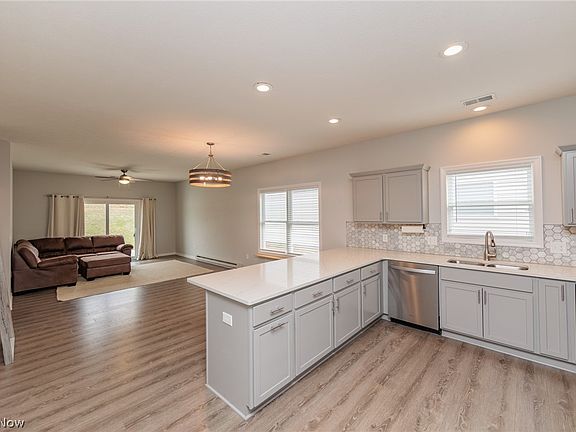 An immaculate 3 bedroom, 2 full bath condo in Pleasant Lakes in Brimfield. This like new unit has many upgrades, included quartz counter tops, soft close cabinets and drawers, back splash, stainless steel appliances, flooring, lighting, and a walk up attic in the garage for additional storage. A large master suite has a large walk in closet. There is a patio, 2 car garage, foyer with coat closet, and so much more.