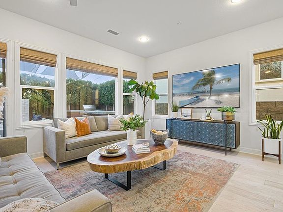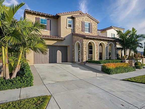 Welcome to your elevated, modern and beautifully appointed oasis. This Toll Brothers home is located in the near new neighborhood of Robertson Ranch, in the highly sought after beach community of Carlsbad. Built in 2016, this 2,948 sq ft, 4 bedroom, 4.5 bath home captivates you with its alluring curb appeal, boasting a silver travertine walkway and Tuscan inspired arches woven throughout a stacked stone entry. Upon entering you'll notice the upgraded two-tone French oak hardwood flooring, soaring 10' ceilings, woven wood shutters and a thoroughly outlined floor plan. The downstairs en-suite is the perfect place for work or guests, nestled away from the bustling living space. This bedroom and bath feature custom carpentry work, hand painted terra cotta tile, etched Carrara marble shower, marble hexagon flooring and Kohler brushed nickel fixtures throughout. Make your way to the relaxed great room with easy access to both your ample kitchen space or finely detailed backyard living space. The kitchen is truly the heart of this home, with upgraded stainless steel KitchenAid appliances, quartz countertops, an oversized center island, farmhouse sink, live edge floating shelves, cement tile backsplash and hand-rubbed antique glass globe pendant lights. A spacious dining area lends itself well to an informal or formal dining experience, based on your mood. From any of your three "common" living areas, enjoy the ambiance of your carefully crafted backyard retreat. The silver travertine and stacked stone continues throughout to provide continuity. Met with several outdoor settings, you couldn't ask for more. Cozy up in front of your stately electric fireplace, grill on your Delta Heat barbeque, enjoy a meal at your counter height concrete fire table or warm up in your private and secluded VitaSpa. Upstairs, you'll find three generous en-suite bedrooms and an open loft, perfect for your home gym, movie or game room! The oversized primary bedroom and bathroom is home to quartzite countertops, Carrara marble shower enclosure, free-standing Jacuzzi tub, custom mirrors, custom brass lighting, hand-painted tile backsplash and Kohler brushed nickel fixtures. Your convenient, upstairs laundry boasts hand-painted terra cotta tile, an expansive quartz countertop, deep wash sink and plenty of cabinetry for storage. Even your two-car garage has been updated with an epoxy-coated flooring, liberal cabinetry, and storage racks. The serene neighborhood of Robertson Ranch features a resort-like recreation center, including a pool, spa, cabanas, and outdoor fireplace. The development has five parks and is surrounded by open space. Residents enjoy nearby amenities including Legoland, the Flower Fields, Calavera Trails, upscale shopping & dining, golf, and more all within the coveted Carlsbad School District.