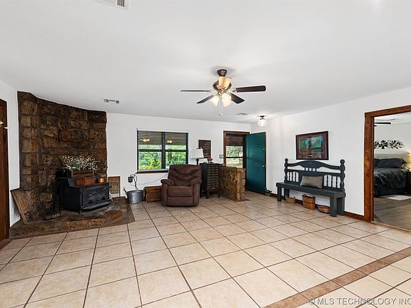 Welcome to the country! 1 Acre m/l, 3 Bed, 2 Ba, Living Room with wood burning stove, open floor plan to large country kitchen with granite counter tops. Den has bookcases, 2 closets and vaulted wood ceiling. Windows have been updated, metal roof, aerobic system less than 2 weeks old, the old septic has been capped. Nice size utility with shelving for pantry. Seller is leaving all appliances, stove dishwasher, refrigerator, microwave, washer/dryer. Small shed, container and storage shop (3 bay w/electric & concrete floor to be used only for storage). Large mature trees give you lots of shade to enjoy your covered front porch and covered patio. Located on paved roads!