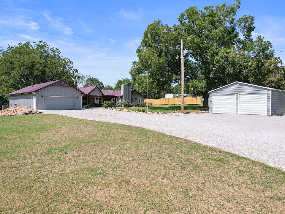 Welcome to this stunning property that perfectly blends modern style with country living. Situated on a spacious lot with open fields and mature trees, this home offers privacy, comfort, and plenty of room to spread out. Step inside and you'll find a bright, open kitchen featuring custom white cabinetry, sleek stainless steel appliances, a large island with marble countertops, and a stylish tile backsplash. The vaulted tongue and groove aspen ceilings with recessed lighting adds warmth and character, creating an inviting space for both everyday living and entertaining. The home also boasts a beautiful sunroom with large arched windows that flood the space with natural light while offering serene views of the surrounding landscape. Whether you're enjoying your morning coffee or hosting friends, this room is the perfect spot to relax year-round. Outside, the property showcases classic curb appeal with a metal roof, covered porch, and landscaped front yard. A gravel driveway leads to both an attached two-car garage and a detached shop/garage, offering plenty of storage and workspace. Nestled on a generous lot, the home provides plenty of outdoor space for gardening, recreation, or simply enjoying the peaceful country setting. Highlights include: Spacious open kitchen with modern finishes Vaulted wood-paneled ceilings with recessed lighting Bright sunroom with oversized windows Attached 2-car garage + detached shop/garage Metal roof and low-maintenance exterior Expansive lot with mature trees and privacy This property offers the best of both worlds-modern amenities in a beautiful rural setting. Don't miss your chance to call this one-of-a-kind home yours!