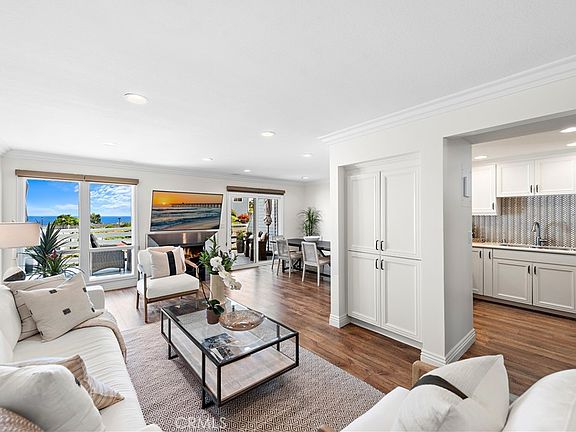 Welcome to this STUNNING COASTAL RETREAT impeccably renovated with PANORAMIC OCEAN AND GARDEN VIEWS just minutes from downtown Dana Point. This spacious townhome spans over 1700 sq. ft. with 3 bedrooms, 2.5 baths, and an office on the main level, providing captivating vistas and refreshing ocean breezes year-round. The abundance of natural light and expansive living areas effortlessly connect to the outdoors, creating a seamless indoor-outdoor living experience for the most discerning buyer. This home offers four distinct outdoor spaces, including a spacious deck, a secluded private courtyard, and two inviting terraces, providing ample opportunities for outdoor enjoyment and relaxation. The large deck showcases a perfect setting for gatherings or quiet moments, with unobstructed views of the Pacific Ocean. The updated kitchen is a chef's dream, featuring custom cabinets, quartz surfaces, stainless-steel appliances, and a breakfast bar ideal for entertaining. The open floor plan showcases beautiful, engineered hardwood floors, crown molding, and recessed lighting, creating a warm and inviting atmosphere. The luxurious primary suite boasts 180-degree ocean views, vaulted ceilings, a cozy fireplace, and access to a terrace for peaceful relaxation. The secondary bedrooms are filled with natural light and share a newly renovated bath. This home also includes a single detached garage and an assigned parking space. Nestled within a community of only 60 homes, residents can enjoy exclusive access to private community amenities including a pool, spa, and clubhouse with a communal kitchen for entertaining. Embrace the coastal lifestyle with convenient proximity to Strands Beach, Salt Creek Beach, Dana Point Harbor, and the lively Lantern District, offering charming restaurants, boutique shopping, top tier golf, and 5-star resorts at the Ritz Carlton and Waldorf Astoria. This meticulously cared for home truly embodies quintessential coastal living.
