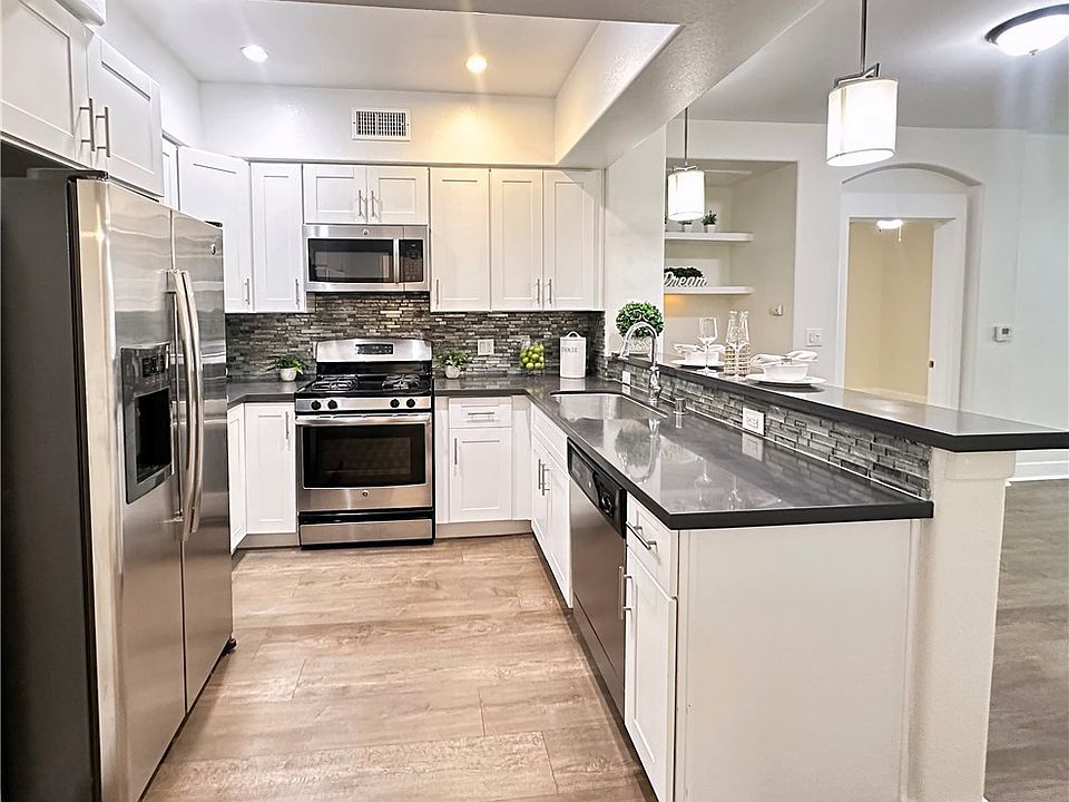 New carpetGenerous walk-in closetLuxury plank flooringQuartz countertopsStainless steel appliancesUpdated bathroom light fixturesBuilt-in desk