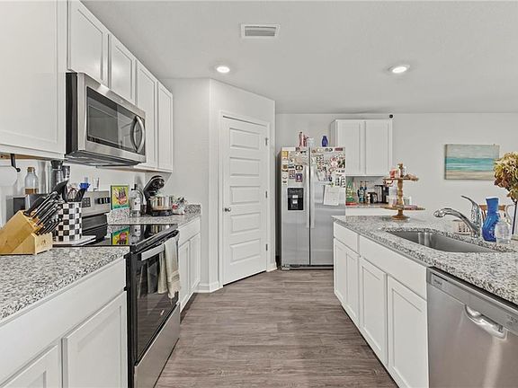Three additional bedroomsSoaking tubDouble vanitySidewalk-lined neighborhoodOpen-concept designLarge laundry roomWalk-in pantry