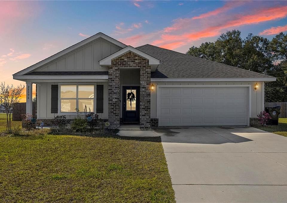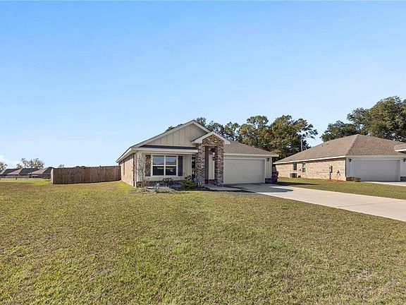 Discover easy living in this nearly new home in the popular Ponder Place community of Loxley! Tucked inside a sidewalk-lined neighborhood with a playground and convenient access to I-10 and Hwy 59, this location puts you minutes from Mobile, Pensacola, and the beautiful Gulf Coast beaches. Step inside to a bright and welcoming layout featuring the highly desired Cali floor plan. The open-concept design blends the kitchen, dining, and living areas into one comfortable space, perfect for hosting company or enjoying everyday life. The kitchen offers a large center island, granite countertops, a walk-in pantry, and a clear view of the living area, making cooking and connection effortless. Relax on the covered back patio, where there's plenty of room to unwind or entertain in the Alabama sunshine. Inside, the main living spaces feature durable Mohawk luxury vinyl plank flooring, and both bathrooms showcase granite countertops for a polished, modern look. The spacious primary suite feels like a retreat with its natural light, double vanity, soaking tub, separate shower, and generous walk-in closet. Three additional bedrooms and a second full bath are thoughtfully positioned to provide comfort and privacy for guests or others. You'll love the extras: a large laundry room, multiple storage closets, and Energy Star features that boost efficiency year-round. This Gold Fortified home also offers enhanced storm protection and potential insurance savings. Skip the build time! This move-in-ready home has been gently lived in and beautifully maintained. Come see why Ponder Place is one of Loxley's favorite communities! Schedule your private showing today. Buyer to verify all information during due diligence.
