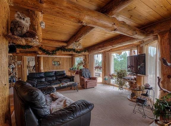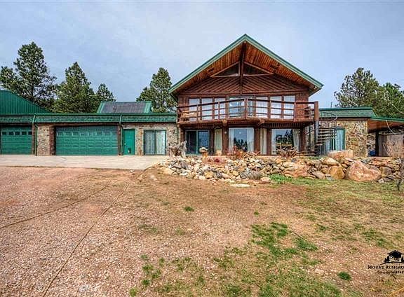 Nice house amazing shop! Located just 1/2-mile off Hwy 40 and only 20 minutes from Rapid City. The house features convenient main level living with a spacious master bedroom, bathroom and walk-in closet. The open floor plan has lots of windows with a southern exposure. Upstairs is a great room with vaulted ceiling's and lots of windows. The entire house has lots of character and features handcrafted log trusses and accents. The southern views are spectacular and have no other houses in the line of sight. Attached to the house is an oversized two stall garage and attached to the garage is a monster shop developed in the following manner; a 10 x 30 wash bay with 10 foot ceiling, next is a 36 x 45 shop with 14 foot sidewalls fully insulated complete with industrial lighting and 14 x 14 overhead door and a 26 x 45' cold storage with a 14 x 16 door. This is big enough to fit a full-sized motorcoach or any fifth wheel camper. Many addt'l feautures, root/wine cellar and garden.