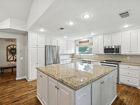 East facing backyardBeautiful hardwood flooringFloor to ceiling fireplaceBeautifully remodeled island kitchenQuaint and cozy sunroomHuge islandTile in wet areas
