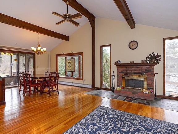 - Din Dscrp: Flooring - Hardwood, Window(s) - Bay/Bow/Box, Ceiling - Cathedral, Open Floor Plan, Slider, Ceiling - Beamed