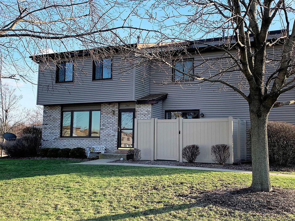 Just what you've been waiting for! Move in and enjoy making this place your home sweet home. Spacious living room will accommodate all your furniture placement and the large windows facing the front of the property bring in lots of light. Galley style kitchen makes for easy meal prep, and the dining area allows room for a sit down dinner with friends. Upstairs is the large master bedroom with double closet, second bedroom and full bath. Full finished basement brings extra living space and second full bath. Private fenced courtyard patio just off the dining area, and there is plenty of open space around the building so bring on the summer fun! Designated parking space and 1 car detached garage are just outside. This is going to move fast, so don't miss this opportunity!