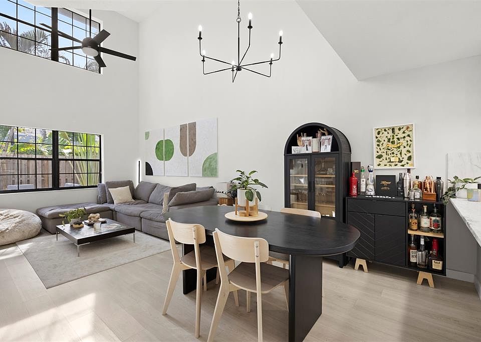 Beautifully remodeled 3BR/2BA townhome in a well-run, gated community offering EXCEPTIONAL VALUE! Enjoy ultra-high ceilings, incredible natural light, and a beautiful, spacious coffee bar in the kitchen, complemented by granite countertops and new appliances throughout. Enjoy a large pavered patio perfect for BBQs and outdoor living. The community features a heated pool, tennis and basketball courts, and plenty of green space for pets.