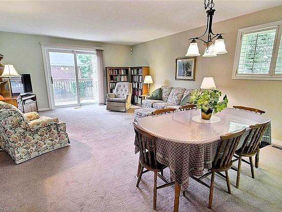 Properties like this are a rare find! This exceptional end-unit bungalow boasts a bright and airy main floor filled with natural light. It features an eat-in kitchen, an open living-dining area, a spacious primary bedroom, a second bedroom that can easily double as an office, along with the convenience of main floor laundry. The expansive basement offers a cozy family room with above-ground windows and a fireplace, a generous bedroom, a bathroom, and additional storage space. Centrally located, this gem is just a short walk from all the amenities of downtown Preston. Enjoy a prime location in South Preston, close to schools, churches, restaurants, and shops, as well as scenic walking trails along the river. Plus, it's only minutes away from Highway 401. A wonderful home!