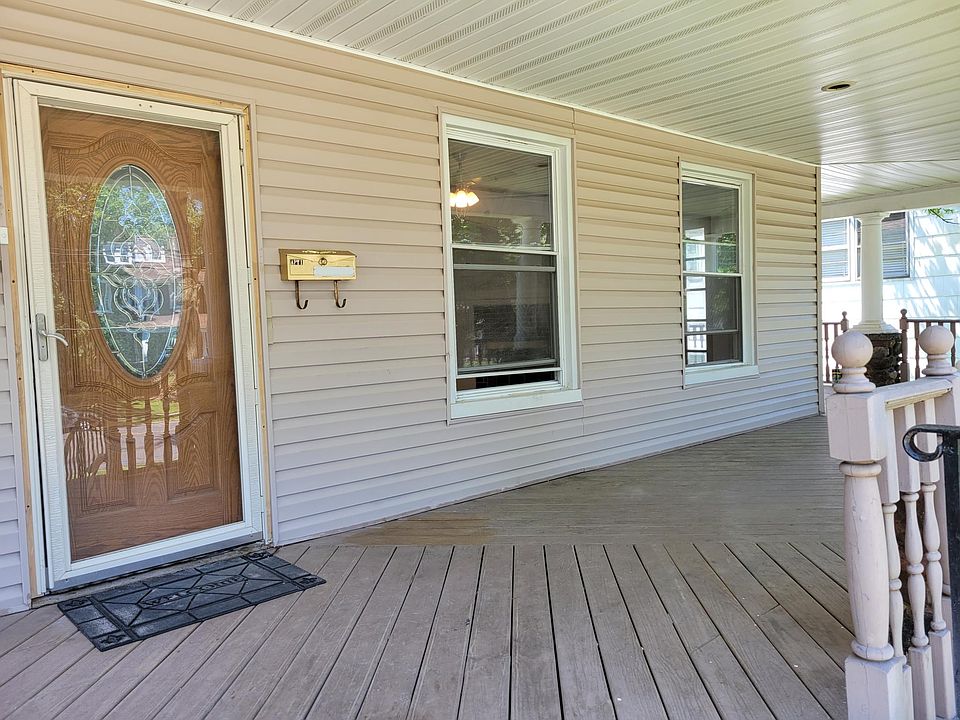 Enjoy warm evenings on the exclusive use, wrap porch. Large living rm w/private door to side of the porch. Eat-in kitchen with updated SS appliances. Also updated, is the bath. Two nice size bedrooms with new "wood-look" vinyl floors. Loving back yard that is shared with the 2nd floor tenant. Two off street parking spaces. The rental includes lawn maintenance, sewer, trash removal and water. There are laundry hook ups in the basement for our washer and dryer.