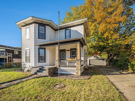 See it in person today! This 3 to 4 bedroom, 1 bathroom updated home with new roof is ready for you. New stylish ceiling fans and ceiling texture prints unique to each room. New flooring on the main level; the upper level has finished and polished natural wood and custom carpet with hand sewn edges. The room off the kitchen would make a wonderful main bedroom or beautiful office space. The basement offers plenty of storage space or a fun crafting center. While respecting the classic beauty of the original character of the house the owner has given great attention to detail even restoring the weighted windows to glide open and shut. The detached 2 car garage appr 20x24 has been drywalled and new roof, doors and windows installed on the garage.