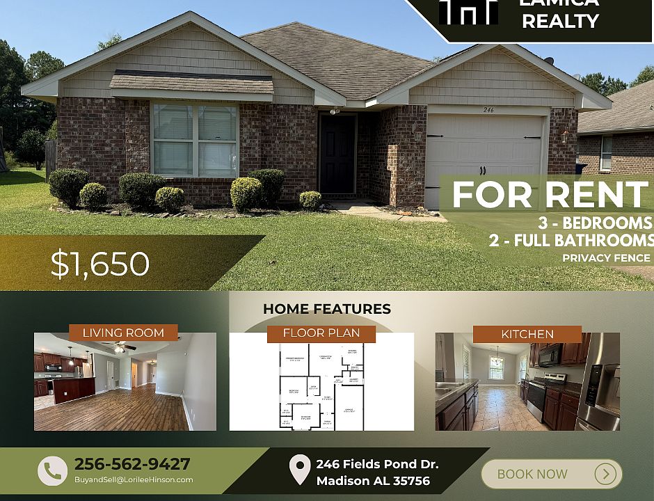 Welcome home to this beautiful 3-bedroom, 2-bath property located in the desirable Madison area, just minutes from the Arsenal Gate and I-565.