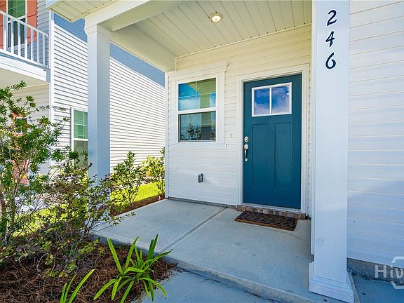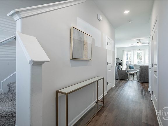 Just 2 years old, this sun-filled home backs up to a protected natural habitat for privacy and scenic views. Luxury plank flooring runs throughout the downstairs—durable and stylish, perfect for kids and pets. The bright white kitchen offers generous workspace, a large island, and the refrigerator is included. The mounted TV bracket with storage console also remains. Upstairs, the owner’s suite is a true retreat with tray ceiling, sitting area, dual closets, and a spa-style bath featuring a large tiled shower with bench. Both guest bedrooms enjoy views of the wooded buffer. Outdoors, unwind on the oversized patio while watching deer, squirrels, and songbirds in their natural setting. The neighborhood offers great amenities, and the location is unbeatable—just a short drive to Richmond Hill’s coastal charm, Hunter Army Airfield, and quick access to I-95.