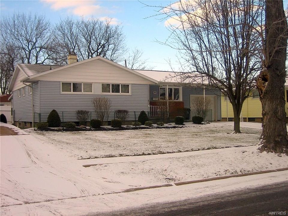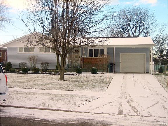 If your New Year's wish was to find the perfect Ranch style home in the Town of Tonawanda, your wish has been answered. This stunning Holiday, 3 bdrm Ranch has it all. Large updated applianced Cherry kitchen, updated bath, like new wall-to-wall carpeting throughout w/hdwd flrs underneath, 150 amp electric service, enclosed covered sun rm (w/new windows - 3 yrs) off master bdrm, new sliding doors off dining rm to covered patio, new garage flr & front walkway, roof less than 17 yrs, updated furnace, A/C, windows, sump w/water backup system. 80% Finished rm in bsmt w/cedar closet (14x14). Dry bsmt. This home shows like Better Homes & Gardens. Immaculate, turn key property.